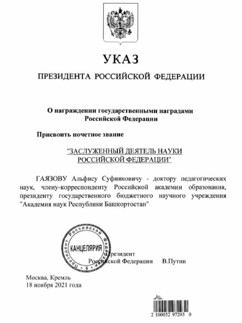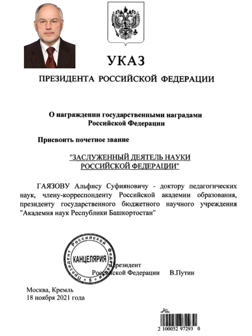 Уважаемому нашему земляку, выпускнику Староказанчинской школы 1973 года, Альфису Суфияновичу указом Президента РФ от 18 ноября 2021 года присвоено почетное звание "ЗАСЛУЖЕННЫЙ ДЕЯТЕЛЬ НАУКИ РОССИЙСКОЙ ФЕДЕРАЦИИ".